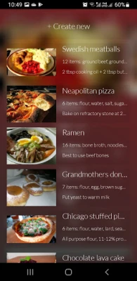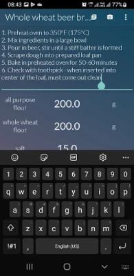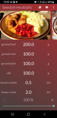 Store your recipes in one place and get your ingredients recalculated instantly just by swiping your finger. Enter all recipe ingredients and set desired percentage value - values of all ingredients will be recalculated instantly. You can also store notes (e.g. instructions) and images for your recipes.