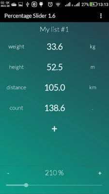 However, app is not limited to only recalculate ingredients portions, but basically any value in your list. You can define custom unit for each value (such as kg, ml, oz, cm, inch... etc) and custom name to easily identify each value. Everything is saved as you exit the app.